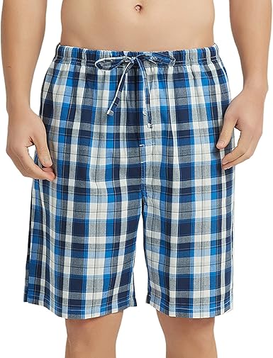 Men's 100% Cotton Woven Pajama Shorts, Lightweight Pajama Shorts with big pockets for Men Plaid Pj Bottoms