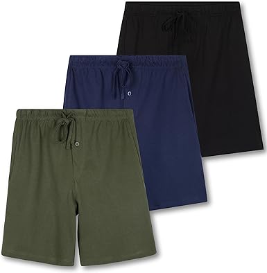 3 Pack:Mens Cotton Ultra-Soft Knit Sleep Pajama Shorts & Lounge Wear (Available in Big & Tall)