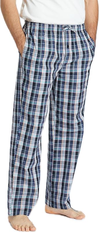 Mens Pajama Pants 100% Cotton Plaid Sleep & Lounge Pants, PJ Bottoms with Pockets and Button Fly