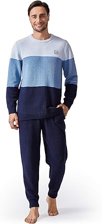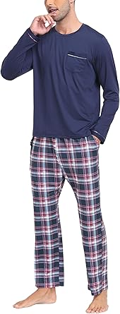 Men's Pajama Sets Sleepwear Nightwear Lightweight Quick Dry Soft 2 Piece Long Sleeve Mens Loungewear Sets with Pocket