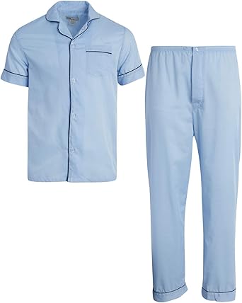 Men's 2-Piece Pajama Set with Short Sleeve Shirt and Long Pants