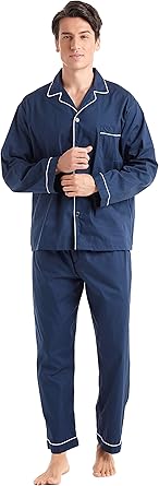 Men’s Cotton Pajama Set, Long Sleeve Button-Down Woven Sleepwear