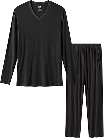 Mens Pajama Set Long Sleeve V Neck 2 Piece Nightwear Loungewear Sleepwear Modal Pants With Pockets Pj's Sleep for Men