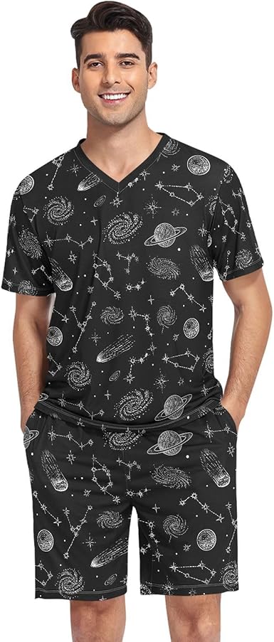 Men's Short Sleeve Pajama Set Summer Pj Short Set 2 Piece Loungewear Sleepwear with Pockets