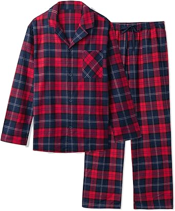 Men's 100% Cotton Flannel Pajama Set, Soft Plaid Sleepwear, Lightweight & Breathable Long Sleeve Loungewear