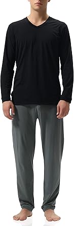 Men's Pajama Sets Sleepwear Nightwear Lightweight Quick Dry Soft 2 Piece Long Sleeve Mens Loungewear Sets with Pocket