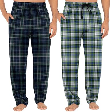 Mens Pajama Pants 100% Cotton Plaid Sleep & Lounge Pants, PJ Bottoms with Pockets and Button Fly