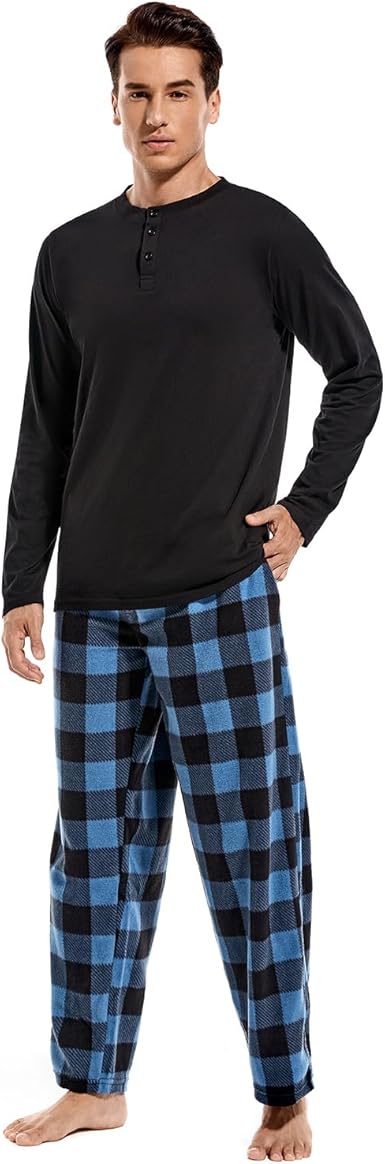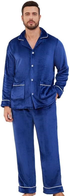 Men Fleece Pajama set,Long Sleeve Soft Comfy Pj Sets.