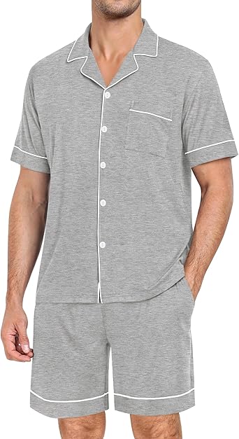Mens Pajama Set Short Sleeve 2 PCS Sleepwear Classic Button Down Soft Loungewear Modal Set Pj Set with Pockets