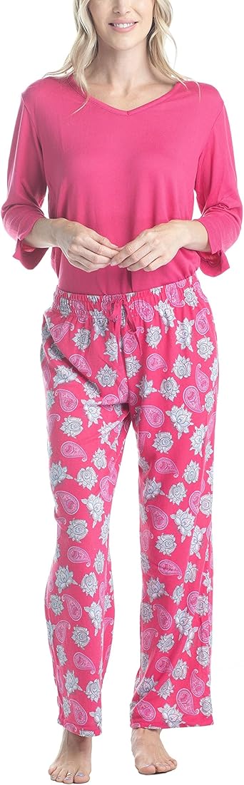 womens Butter Knit 3/4 V-neck Sleep Top and Pajama Pant Lounge & Sleep Set