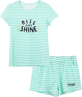 Summer Pajamas for Girls – Stripe & Glittering Heart PJS Pal Cute Jammies Set Big Kids Size 6-16