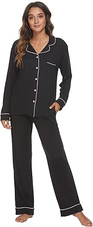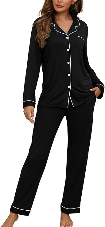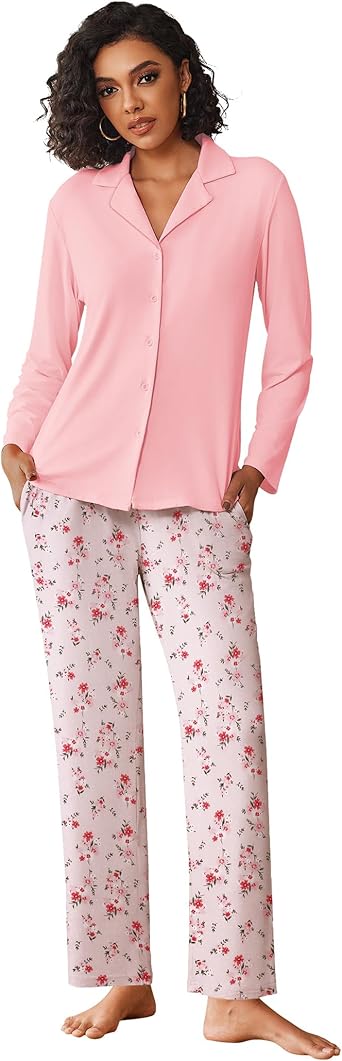 Women's Pajamas Sets Button Down Long Sleeve Lounge Sets Soft 2 Piece Pants Sleepwear