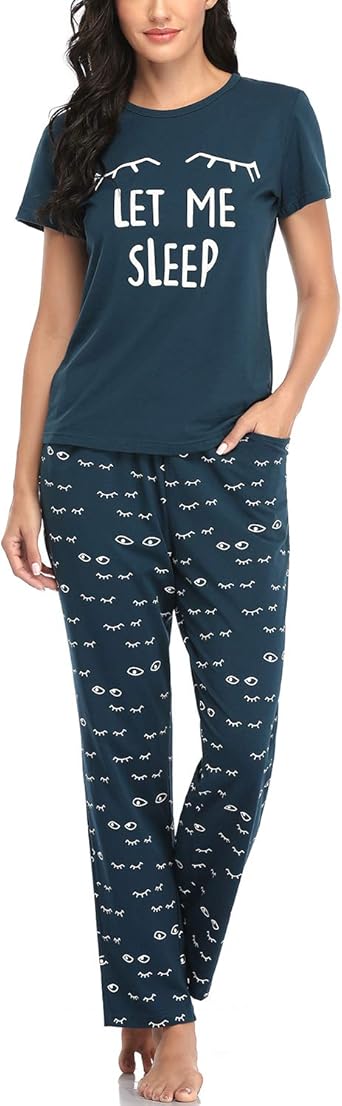 Women's Pajama Set Printed Short Sleeve Top & Long Pants Sleepwear Pjs Sets