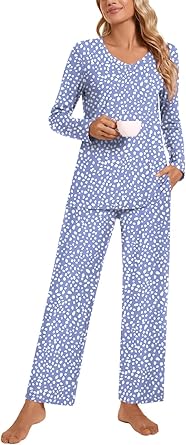 Women's Soft Long Sleeve Pajamas Set Cute Print Top and Pants Pjs Lounge Sleepwear Sets with Pocket