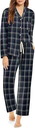 Pajamas Set for Womens 2 Piece Cotton Plaid Loungewear Long Sleeve Sleepwear Soft Button Down Shirts Pjs with Pockets